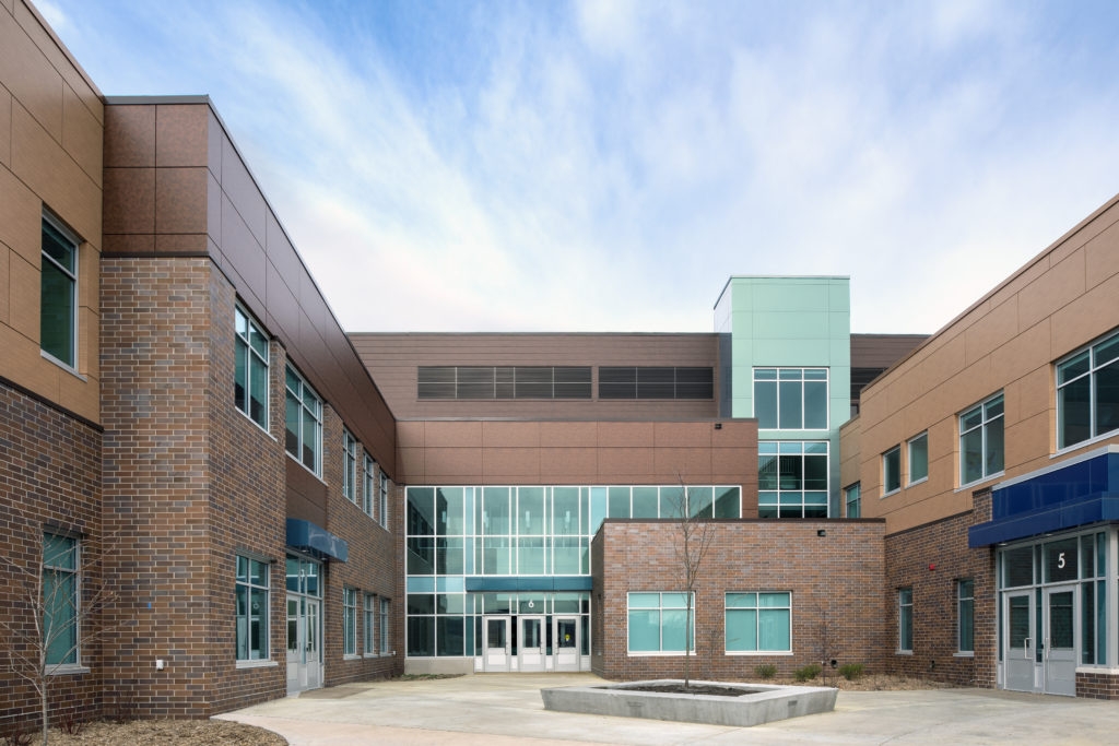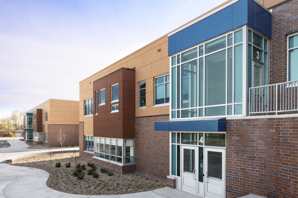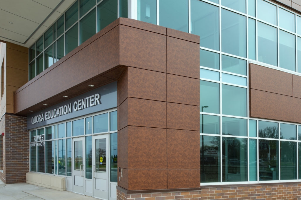 The Quora Education Center in Little Canada, Minn., celebrated its grand opening in August 2018 as the latest educational facility in Minnesota’s Northeast Metro 916 Intermediate School District designed specifically to address the sensory needs of students receiving special education services. Quora Education Center was designed by Minneapolis-based Lawal Scott Erickson (LSE) Architects, Inc., as a replacement for and on the same property as the district’s Capitol View Center, and the innovative building features Alucobond panels in Natural Rusted Metal, Natural Chestnut, Spectra Ocean, and Spectra Amazon.